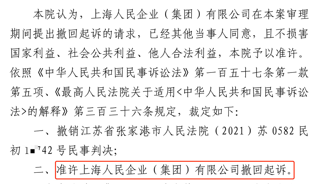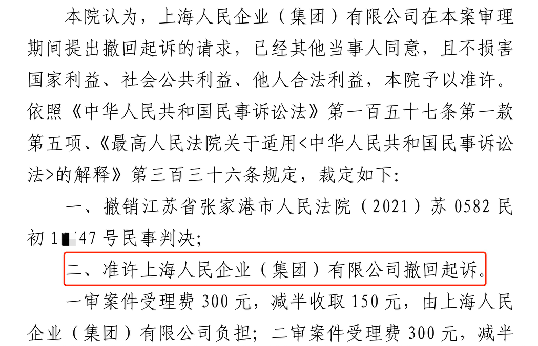 通辽胜诉佳讯 | 人民企业系列案苏州六案上海人民公司撤诉